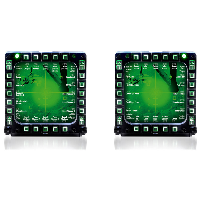 - 20 buttons + 4 switches per MFD = 48 programmable controls in total!