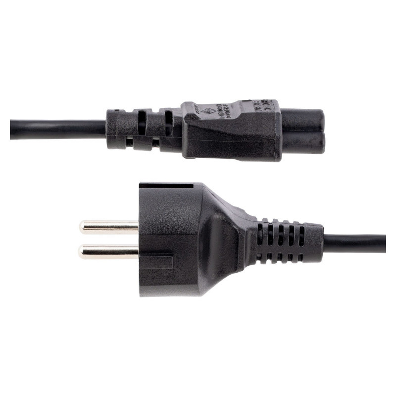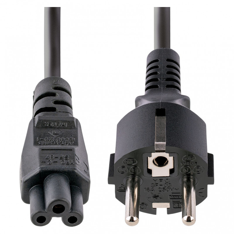 "StarTech.com 3m (10ft) Laptop Power Cord, EU Schuko to C5, 2.5A 250V, 18AWG, Notebook / Laptop Replacement AC Cord, Power Brick Cord, Laptop Charger Cable, Clover Leaf/Mickey Mouse Power Cord. Cable length: 3 m, Connector 1: CEE7/7, Connector 2: C5 coupler, Cable type: H03VV-F. Input voltage: 250 V, Input current: 2.5 A"\n"3m (10ft) Laptop Power Cord, EU Schuko Plug to C5, 2.5A 250V, 18AWG