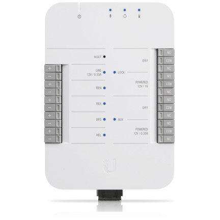 "Ubiquiti Access Hub. Ethernet LAN data rates: 1000 Mbit/s. DC voltage range: 12 - 30 V. Width: 190 mm, Depth: 126 mm, Height: 33 mm"\n"UniFi® Access Hub is an intelligent IP networked single door controller, a part of UniFi Access solution.