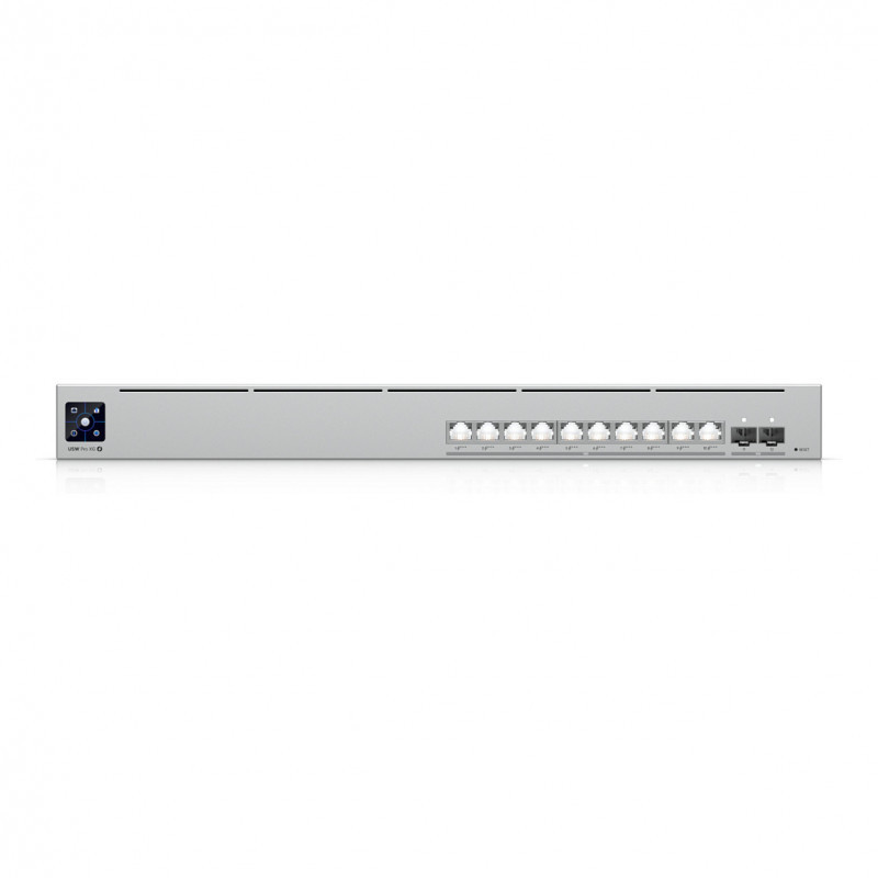 "Ubiquiti UniFi Pro XG 10 PoE. Switch type: Managed, Switch layer: L2/L3. Basic switching RJ-45 Ethernet ports type: 10G Ethernet (100/1000/10000), Basic switching RJ-45 Ethernet ports quantity: 10. MAC address table: 32000 entries, Switching capacity: 240 Gbit/s. Power connector: AC/DC. Power over Ethernet (PoE). Rack mounting, Form factor: 1U"\n"1U, professional-grade 10-port, Layer 3 Etherlighting™ PoE+++ switch with (10) 10 GbE and (2) 10G SFP+ ports."