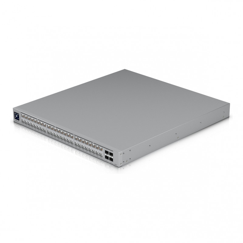 "Ubiquiti UniFi Pro XG 48. Switch type: Managed, Switch layer: L2/L3. Basic switching RJ-45 Ethernet ports type: 10G Ethernet (100/1000/10000), Basic switching RJ-45 Ethernet ports quantity: 48. MAC address table: 128000 entries, Switching capacity: 920 Gbit/s. Power connector: AC/DC. Rack mounting, Form factor: 1U"\n"Professional-grade, 48-port Layer 3 Etherlighting™ switch with (32) 10 GbE, (16) 2.5 GbE, and (4) 25G SFP28 ports."