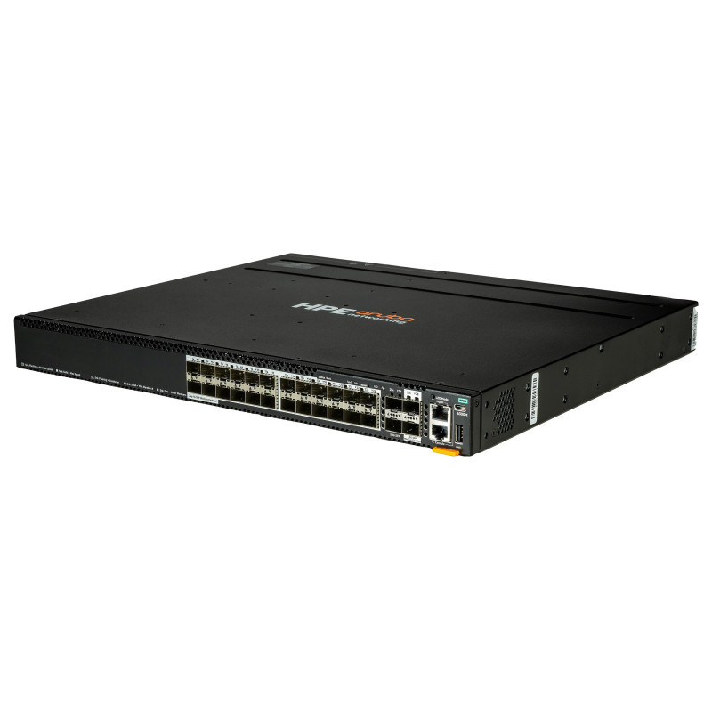 "HPE Aruba Networking CX 6300M 24p SFP 1G 2p SFP56 50G 2p SFP28 25G MACsec Switch. Switching capacity: 880 Gbit/s. Power over Ethernet (PoE)"\n"The HPE Aruba Networking CX 6300 Switch Series is a modern, flexible, and intelligent family of stackable switches ideal for access, aggregation, and data center top-of-rack (ToR). Featuring a cloud-native design and fully programmable operating system (OS). The CX 6300 delivers advanced monitoring and troubleshooting with capabilities like a real-time network analytics engine, HPE Aruba Networking Switch Multi-Edit Software and flexible deployment options to implement and validate network configurations. A powerful Gen7 ASIC architecture delivers fast, non-blocking performance for AI, Wi-Fi 7, and Internet of Things (IoT) requirements. HPE Aruba Networking Virtual Stacking Framework (VSF) allows for stacking of up to 10 switches, providing scale and simplified management. This flexible series has built-in high-speed uplinks and supports high-density IEEE 802.3bt high-power PoE with HPE Smart Rate multi-gigabit Ethernet.