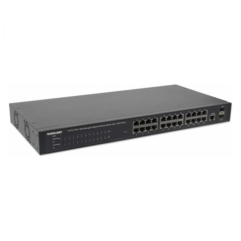 "Intellinet 24-Port Gigabit Ethernet PoE+ Web-Managed Switch with 2 SFP Ports, 24 x PoE ports, IEEE 802.3at/af Power over Ethernet (PoE+/PoE), 2 x SFP, Endspan, 19"" Rackmount. Switch type: Managed. Basic switching RJ-45 Ethernet ports type: Gigabit Ethernet (10/100/1000), Basic switching RJ-45 Ethernet ports quantity: 24. MAC address table: 8000 entries, Switching capacity: 52 Gbit/s. Networking standards: IEEE 802.1D, IEEE 802.1p, IEEE 802.1Q, IEEE 802.1w, IEEE 802.3, IEEE 802.3ab, IEEE 802.3ad, IEEE.... Power over Ethernet (PoE). Rack mounting"\n"Save installation time and money with PoE._x000D_
