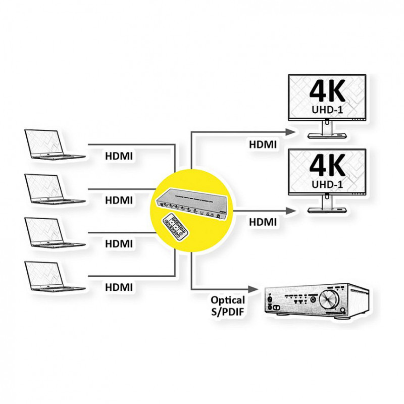 ROLINE 4K HDMI Matrix Switch, 4 x 2, mit Fernbedienung