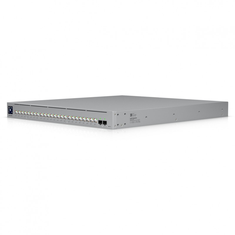 "Ubiquiti UniFi ECS-24-POE. Switch type: Managed, Switch layer: L2/L3. Basic switching RJ-45 Ethernet ports type: 10G Ethernet (100/1000/10000), Basic switching RJ-45 Ethernet ports quantity: 24. MAC address table: 128000 entries, Switching capacity: 460 Gbit/s. Networking standards: IEEE 802.1x, IEEE 802.3bt. Power connector: AC-in jack. Power over Ethernet (PoE). Rack mounting, Form factor: 1U"\n"Enterprise-grade 24-port, Layer 3 Etherlighting™ PoE+++ switch with high-capacity 10 GbE RJ45 and 25G SFP28 connections for high availability system design."
