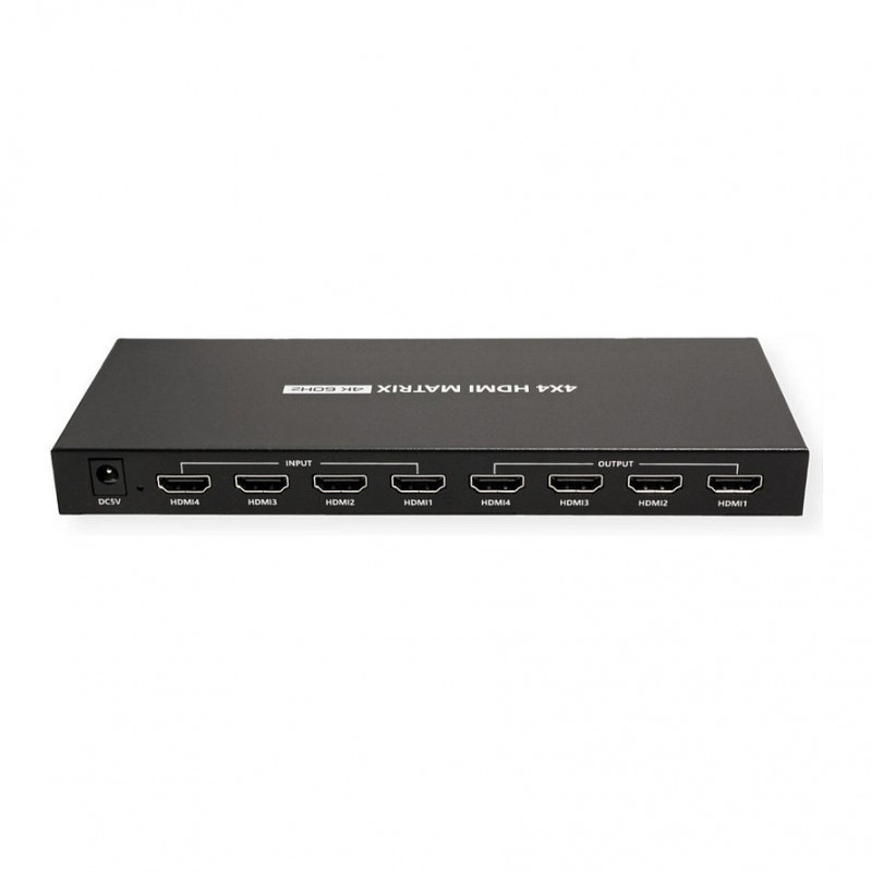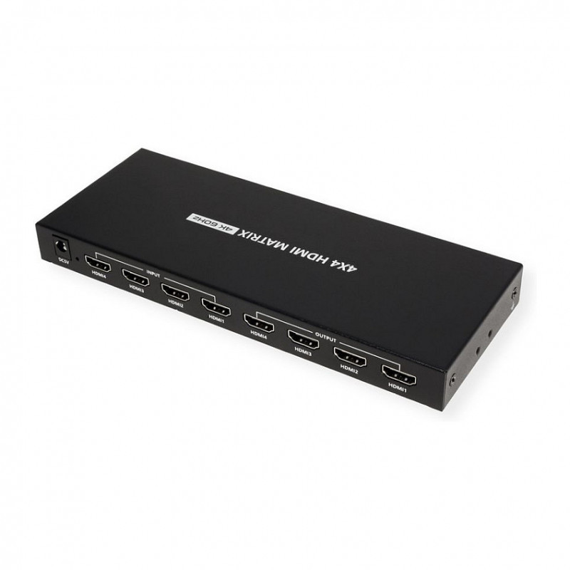 "VALUE 14.99.3593. Product type: AV matrix switcher, Data transfer rate: 18 Gbit/s, Maximum resolution: 4096 x 2160 pixels. Housing colour: Black. AC input voltage: 5 V, Input current: 1 A. Width: 210 mm, Depth: 80 mm, Height: 21 mm"\n"Description