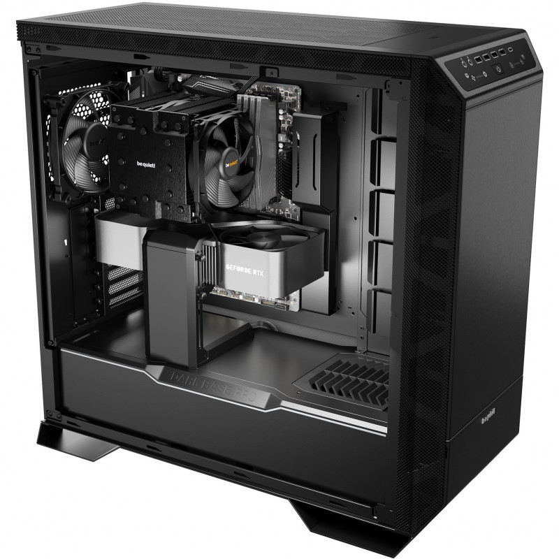 "be quiet! DARK BASE PRO 901 | Black. Form factor: Full Tower, Type: PC, Product colour: Black. Power supply location: Bottom, Supported power supply form factors: ATX, PS2. Front fans installed: 2x 140 mm, Front fans diameters supported: 120,140 mm, Side fans diameters supported: 120 mm. Supported HDD sizes: 2.5,3.5,5.25"". Width: 275 mm, Depth: 604 mm, Height: 569 mm"\n"OUTSTANDING VERSATILITY, PERFORMANCE AND SILENCE