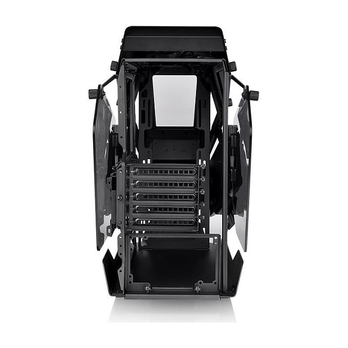 "Thermaltake AH T200. Form factor: Micro Tower, Type: PC, Product colour: Black. Power supply location: Bottom, Supported power supply form factors: PS2. Front fans diameters supported: 120,140 mm, Top fans diameters supported: 120,140 mm, Front radiator sizes supported: 120,140,240,280 mm. Supported HDD sizes: 2.5,3.5"". Width: 282 mm, Depth: 551.5 mm, Height: 444.2 mm"\n"The Thermaltake AH T200 is a helicopter styled open frame micro chassis which comes with two 4mm tempered glass panels on left and right sides and can support motherboards up to Micro ATX.