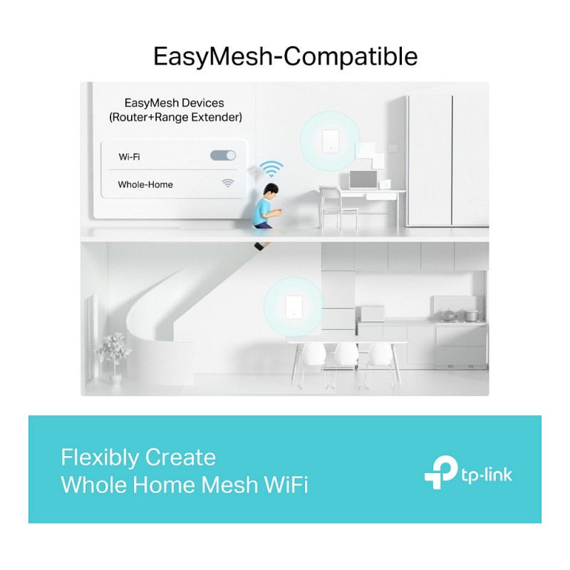 Archer Air E5 is EasyMesh-compatible. If you have any WiFi dead zones at home, simply add another EasyMesh router to further form your whole home mesh WiFi. No more searching for a stable connection. For a better network experience, we recommend combining with Archer Air R5.