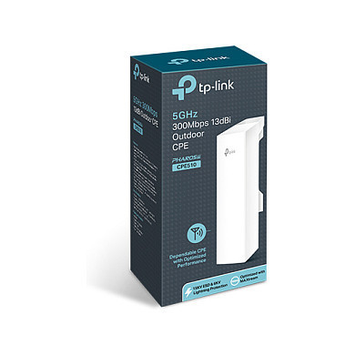 "TP-Link 5GHz 300Mbps 13dBi Outdoor CPE. 5 GHz, Maximum data transfer rate: 300 Mbit/s. Security algorithms: AES, TKIP, WPA, WPA-PSK, WPA2, WPA2-PSK. Ethernet LAN data rates: 10,100 Mbit/s. Power over Ethernet (PoE). Product colour: White"\n"What this product does