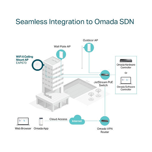 The Omada Software Defined Networking (SDN) platform integrates network devices including access points, switches, and routers to provide 100% centralized cloud management and create a highly scalable network—all controlled from a single interface.