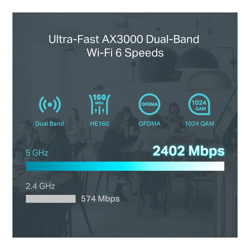 ER706W is an enterprise-grade dual-band wireless router. It’s ideal for remote administration that requires high performance due to the revolutionary combination of the latest WiFi 6 technologies, including HE160, OFDMA, 1024 QAM, and more.‡ Simultaneously supporting 2402 Mbps on 5 GHz and 574 Mbps on 2.4 GHz, ER706W’s concurrent transmission rate reaches up to 3 Gbps. Bufferless network experience is at your fingertips.