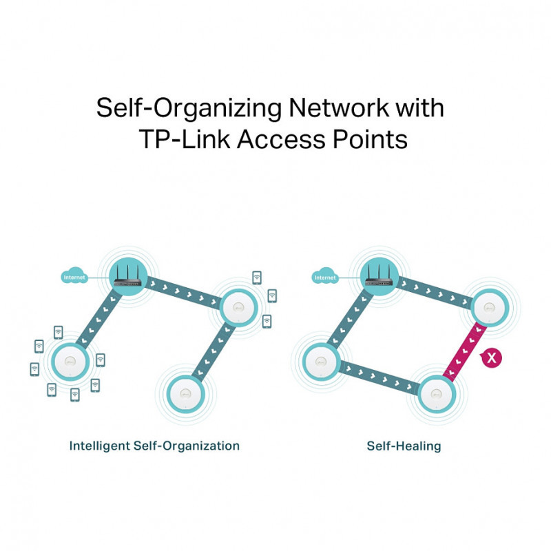 ER706W is able to seamlessly connect to Omada access points that support mesh technology, ideal for large-scale environments. Intelligent self-organization optimizes the best path between ER706W and Omada Access Points while self-healing ensures you stay online even when one AP is disrupted.