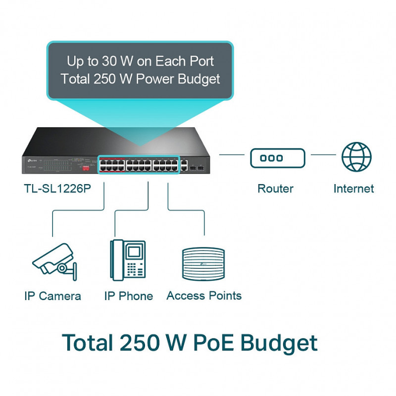 - 250 W PoE Budget