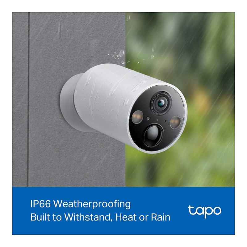 "TP-Link Tapo Smart Wire-Free Security Camera. Type: IP security camera, Placement supported: Outdoor, Connectivity technology: Wireless. Mounting type: Ceiling/wall, Product colour: White, Form factor: Bullet. Field of view (FOV) angle: 150°. Sensor type: CMOS, Optical sensor size: 25.4 / 3 mm (1 / 3""). Night vision distance: 15 m, LED type: IR, Infra-red wavelength: 850 nm"\n"Feature-Rich Security.