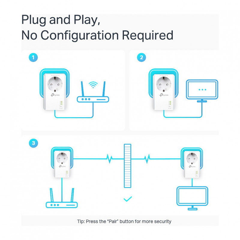 Integrating advanced HomePlug AV2 technology, this kit provides users with high-speed data transfer rates up to 1000 Mbps, which is ideal for bandwidth-intensive applications such as simultaneous HD/3D/4K video streaming, online gaming, and large file transfers. Just plug in and enjoy!