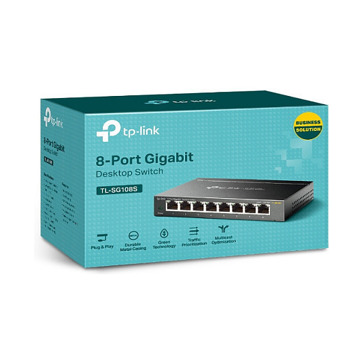 The TP-Link 8-Port 10/100/1000Mbps Desktop Switch provides you an easy way to make the transition to Gigabit Ethernet. Increase the speed of your network server and backbone connections, or make Gigabit to the desktop a reality. Plug and Play design, with no configuration required, makes the product easy to use. Moreover, TL-SG108S adopts lower power consumption design. With the innovative energy-efficient technology, the TL-SG108S can save power consumption, making it an eco-friendly solution for your home or office network.