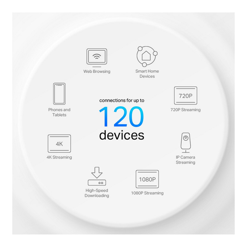 Armed with WiFi 6 technology, Deco whole home mesh WiFi is designed to deliver a huge boost in coverage, speed, and total capacity. Get on the ultra-fast mesh WiFi to enjoy the future network that loads faster and connects more.