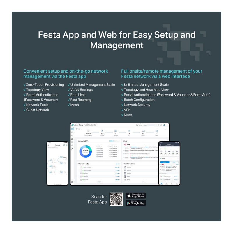 Convenient setup and on-the-go network management via the Festa app