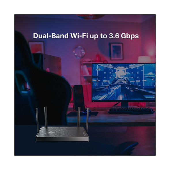 "TP-Link Archer BE3600. WAN connection type: RJ-45. Wi-Fi band: Dual-band (2.4 GHz / 5 GHz), Top Wi-Fi standard: Wi-Fi 7 (802.11be), WLAN data transfer rate (max): 2882 Mbit/s. Ethernet LAN interface type: 2.5 Gigabit Ethernet, Ethernet LAN data rates: 1000 Mbit/s, Cabling technology: 10/100/1000Base-T(X). Number of data streams: 4x4. Security algorithms: WPA, WPA2, WPA3"\n
