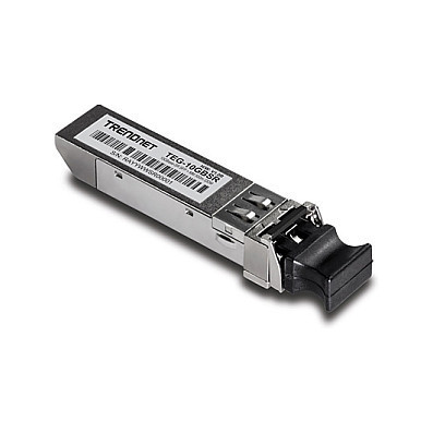 "Trendnet TEG-10GBSR. SFP transceiver type: Fiber optic, Maximum data transfer rate: 10000 Mbit/s, Interface type: SFP+. Power consumption (typical): 0.439 W. Width: 14.8 mm, Depth: 56.5 mm, Height: 11.8 mm"\n"TRENDnet’s hot-pluggable TEG-10GBSR, 10GBASE-SR SFP+ Multi Mode LC Module, works with a MSA compliant SFP+ slot. This Multi Mode transceiver spans distances up to 550 meters (1,804 feet), comes with a LC duplex connector, and supports up to 10.5 Gbps networking throughput speeds. Digital Diagnostics Monitoring (DDM) captures critical device parameters such as transmit/receive power, temperature, and voltage.