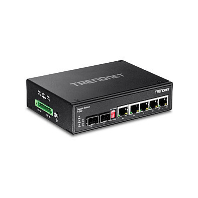 "Trendnet TI-G62. Switch type: Unmanaged, Switch layer: L2. Basic switching RJ-45 Ethernet ports type: Gigabit Ethernet (10/100/1000), Basic switching RJ-45 Ethernet ports quantity: 5. Full duplex. MAC address table: 2048 entries, Switching capacity: 12 Gbit/s. Networking standards: IEEE 802.3u, IEEE 802.3x, IEEE 802.3, IEEE 802.3z, IEEE 802.3ab. Wall mountable"\n"TRENDnet’s TI-G62 is a reliable IP30 unmanaged DIN-rail switch with hardened components rated for extreme industrial environments. It offers 5 Gigabit Ethernet ports, one shared SFP slot, one dedicated SFP slot, and a 12 Gbps switching capacity. DIP switches toggle between the shared Gigabit port and SFP slot and set supported throughput to either 100 Mbps or 1 Gbps. Dual redundant power inputs (power supply sold separately: TI-M6024) and a power failure alarm output trigger support zero downtime applications."