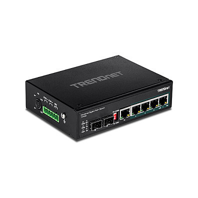 "Trendnet TI-PG62. Switch type: Unmanaged. Basic switching RJ-45 Ethernet ports type: Gigabit Ethernet (10/100/1000), Basic switching RJ-45 Ethernet ports quantity: 4. Full duplex. MAC address table: 1000 entries, Switching capacity: 12 Gbit/s. Networking standards: IEEE 802.3, IEEE 802.3ab, IEEE 802.3af, IEEE 802.3at, IEEE 802.3u, IEEE 802.3x, IEEE 802.3z. Power over Ethernet (PoE). Wall mountable"\n"TRENDnet’s TI-PG62 is a reliable IP30 unmanaged DIN-rail PoE+ switch with a rugged housing rated for extreme industrial environments. It offers 4 Gigabit PoE+ ports, one shared Gigabit port (RJ-45 / SFP), one dedicated SFP slot, and a 12 Gbps switching capacity. Dual redundant power inputs and a power failure alarm relay.