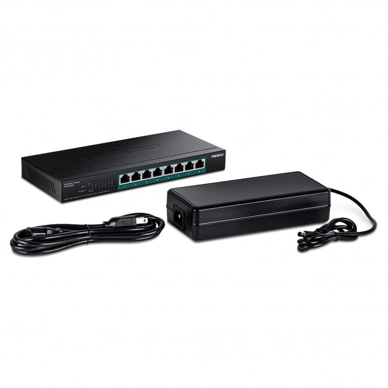 "Trendnet TPE-BG380. Switch type: Unmanaged. Basic switching RJ-45 Ethernet ports type: 2.5G Ethernet (100/1000/2500), Basic switching RJ-45 Ethernet ports quantity: 8. Full duplex. MAC address table: 4000 entries, Switching capacity: 40 Gbit/s. Networking standards: IEEE 802.3, IEEE 802.3ab, IEEE 802.3af, IEEE 802.3at, IEEE 802.3bt, IEEE 802.3bz, IEEE 802.3u,.... DC input voltage: 46 - 54 V. Power over Ethernet (PoE). Wall mountable"\n"Expand your network’s bandwidth and reduce traffic bottlenecks with TRENDnet’s 8-Port 2.5G PoE++ Switch, model TPE-BG380. This 2.5G PoE++ switch is equipped with 2.5GBASE-T RJ-45 ports that provide multi-gigabit speeds capable of up to 2.5Gbps over your existing Cat5e or better cabling. This multi-gigabit PoE++ switch features a durable metal enclosure and can be mounted to the wall for setup flexibility. The fanless design lowers energy consumption and eliminates distracting operating noise.