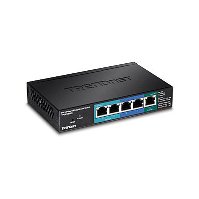 "Trendnet TPE-P521ES. Switch type: Managed. Basic switching RJ-45 Ethernet ports type: Gigabit Ethernet (10/100/1000), Basic switching RJ-45 Ethernet ports quantity: 5. MAC address table: 2048 entries, Switching capacity: 10 Gbit/s. Networking standards: IEEE 802.1D, IEEE 802.1Q, IEEE 802.1p, IEEE 802.1w, IEEE 802.3, IEEE 802.3ab, IEEE 802.3ad, IEEE.... Power over Ethernet (PoE). Wall mountable"\n"5-Port Gigabit PoE+ Powered EdgeSmart Switch with PoE Pass Through, model TPE-P521ES, is powered by a PoE+ switch or injector, no AC adapter is required. It features two gigabit non-PoE ports, and two gigabit PoE ports to power devices such as IP cameras, VoIP handsets, and wireless access points. Reducing unnecessary switch complexity, this EdgeSmart switch is equipped with only the most commonly used managed switch features. The simple web-based user interface allows you to easily manage VLANs, QoS, and monitoring.