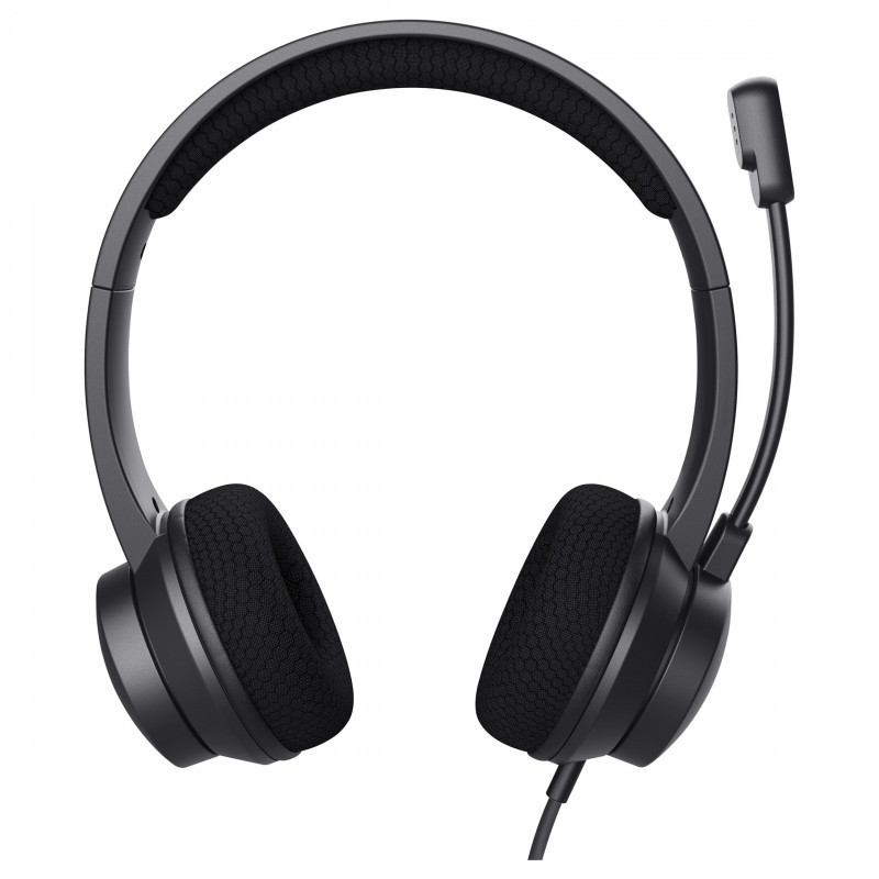 "Trust Ayda. Product type: Headset. Connectivity technology: Wired. Recommended usage: Calls/Music. Headphone frequency: 20 - 20000 Hz. Cable length: 1.8 m. Weight: 147 g. Product colour: Black"\n"Noise out, voice in