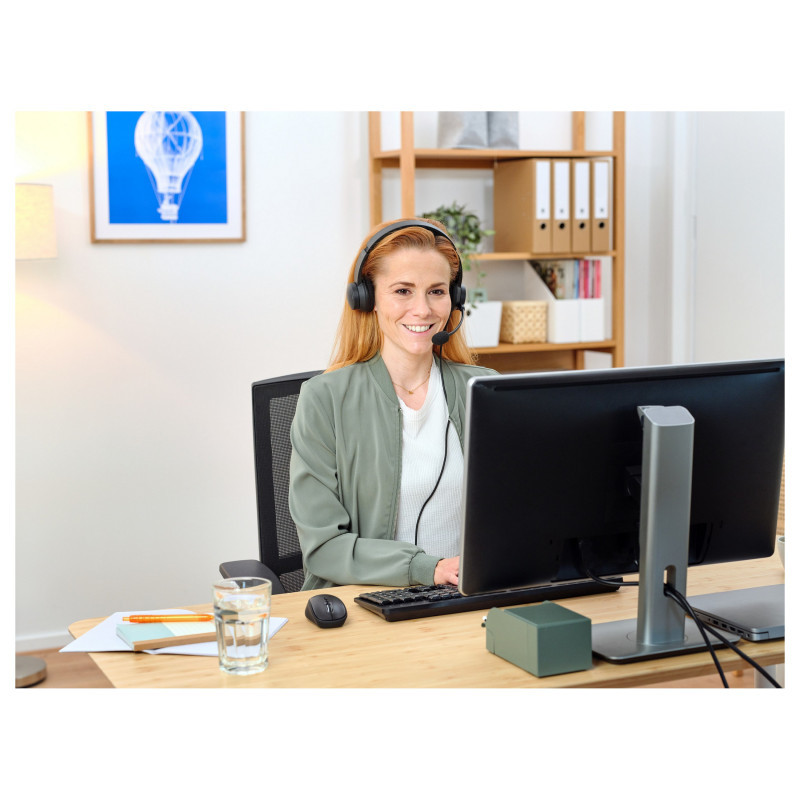 Meeting notification take you by surprise? No worries! Simply plug this headset in via the convenient USB and USB-C connection, compatible with any laptop or PC, and you’ll be ready to go in no time at all."