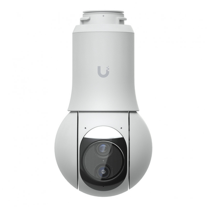 "Ubiquiti G6 PTZ. Type: IP security camera, Placement supported: Indoor & outdoor, Connectivity technology: Wired. Mounting type: Ceiling/Wall/Pole, Product colour: White, Form factor: Spherical. Angle of rotation: 350°, Lens viewing angle, horizontal: 109.9°, Lens viewing angle, vertical: 56.7°. Optical sensor size: 25.4 / 1.8 mm (1 / 1.8""). Night vision distance: 30 m, LED type: IR"\n"All-weather, 4K dual-lens camera with 10x hybrid zoom, 1/1.8"" 8MP image sensor, Multi-TOPS AI Engine, and ultra-low latency pan-tilt-zoom control for motion tracking."