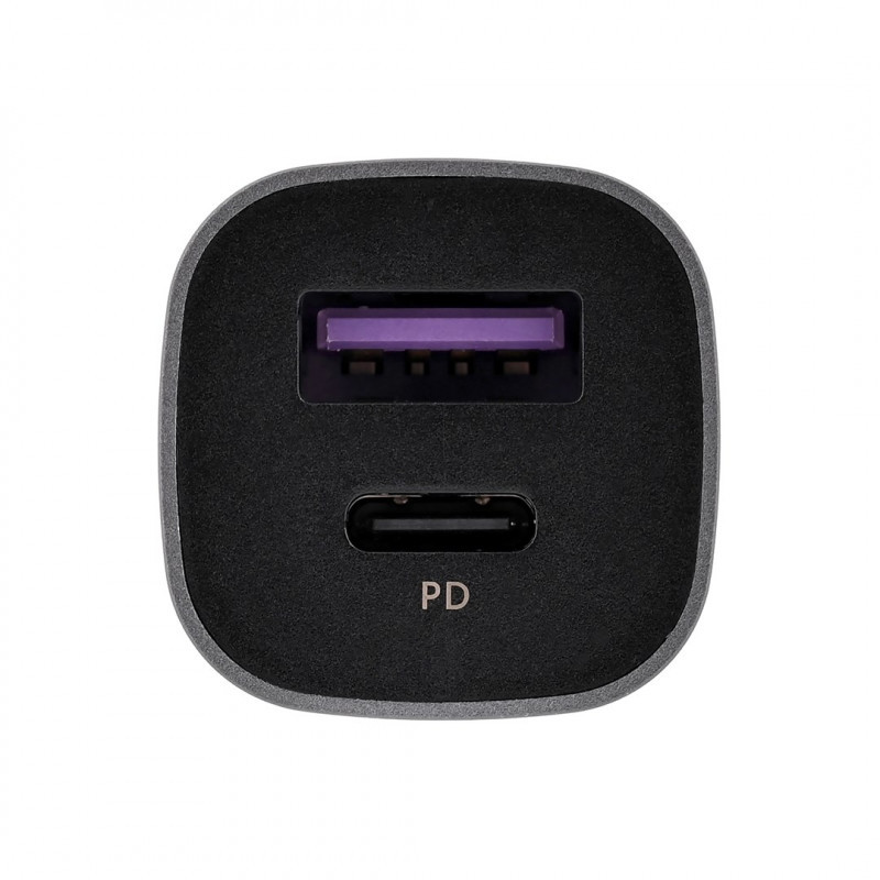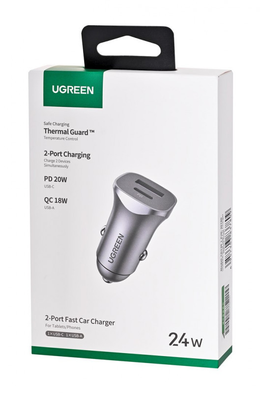 Ugreen USB Type-C / USB 24 W galios tiekimo greito įkrovimo automobilinis įkroviklis, pilkos spalvos (30780)