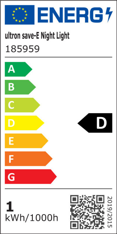 "Ultron 185959. Product type: Plug in night-light, Product colour: White, International Protection (IP) code: IP20. Energy efficiency class: D, Energy consumption per 1000 hours: 1 kWh, Energy efficiency scale: A to G. Width: 82 mm, Depth: 82 mm, Height: 72.5 mm"\n