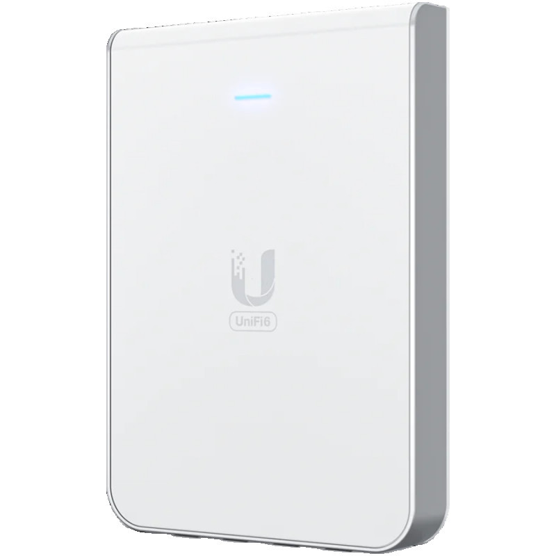 UniFi6 In-Wall. Wall-mounted WiFi 6 access point with a built-in PoE switch.