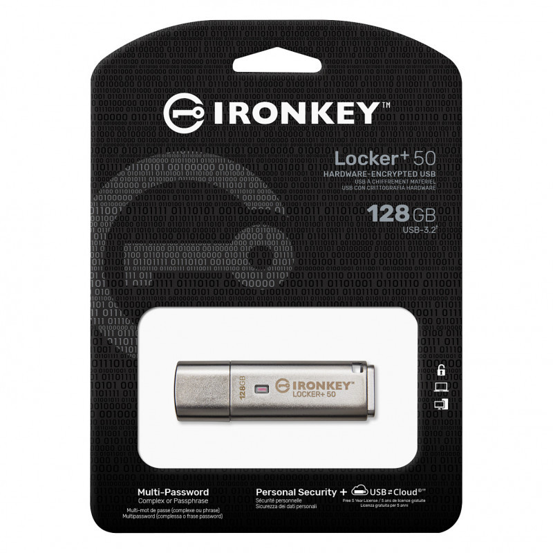 Kingston IronKey™ Locker+ 50 USB Flash drive provides enterprise-grade security with FIPS 197 certified AES 256-bit hardware-encryption in XTS mode, including safeguards against BadUSB with digitally-signed firmware and Brute Force password attacks. LP50 is also TAA compliant.