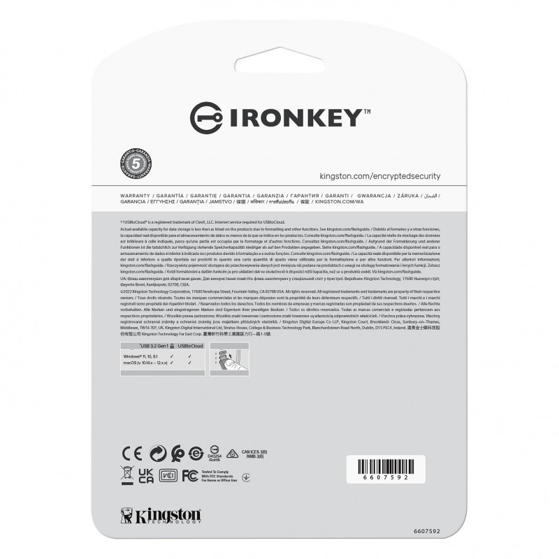 "Kingston Technology IronKey 128GB IKLP50 AES USB, w/256bit Encryption. Capacity: 128 GB, Device interface: USB Type-A, USB version: 3.2 Gen 1 (3.1 Gen 1), Read speed: 145 MB/s, Write speed: 115 MB/s. Form factor: Cap. Password protection. Weight: 27 g. Product colour: Silver"\n"FIPS 197 certified, XTS-AES 256-bit encrypted for data protection with automatic USBtoCloud® back up
