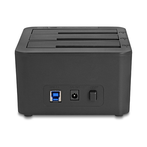 "DeLOCK 64332. Storage media type: HDD, SSD, Storage drive interface: Serial ATA III, Storage drive sizes supported: 2.5,3.5"". Host interface: USB 3.2 Gen 1 (3.1 Gen 1) Type-B. Product colour: Black, Material: Plastic, Maximum data transfer rate: 6 Gbit/s. AC input voltage: 100 - 240 V, AC input frequency: 50 - 60 Hz, Input current: 1.5 A. Windows operating systems supported: Windows 10, Windows 10 x64, Windows 11, Linux operating systems supported: Linux Kernel 6.5, Mac operating systems supported: Mac OS X 14.0 Sonoma, Mac OS X 15.0 Sequoia"\n"This docking station by Delock enables an external connection of up to three 2.5″ or 3.5″ SATA HDDs or SSDs through the USB interface. This solution does not require an external enclosure since the drive can just plug in directly into the docking station.