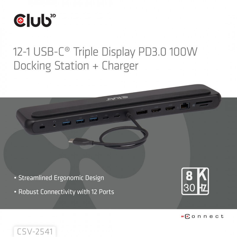 CLUB3D CSV-2541 knyginių kompiuterių dokas / jungčių replikatorius Prijungimas