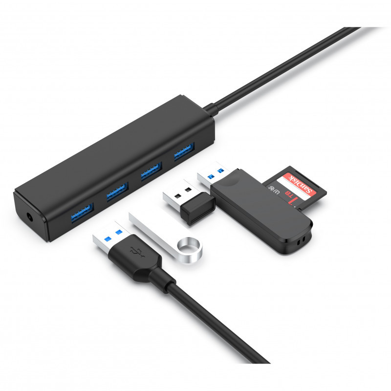 "Conceptronic 4-Port USB 3.0 Hub. Host interface: USB 3.2 Gen 1 (3.1 Gen 1) Type-A, Hub interfaces: USB 3.2 Gen 1 (3.1 Gen 1) Type-A. Data transfer rate: 5000 Mbit/s, Product colour: Black, Cable length: 0.15 m. Windows operating systems supported: Windows 10, Windows 10 Education, Windows 10 Education x64, Windows 10 Enterprise, Windows 10..., Mac operating systems supported: Mac OS X 10.10 Yosemite, Mac OS X 10.11 El Capitan, Mac OS X 10.12 Sierra, Mac OS X 10.13 High.... Width: 23.5 mm, Depth: 101 mm, Height: 26 mm. Package width: 23 mm, Package depth: 75 mm, Package height: 148 mm"\n"This 4 ports USB 3.0 hub makes it possible to expand your netbook, notebook or PC with 4 extra USB 3.0 ports with only using one free USB 3.0 port! You can easily add up to 4 USB devices or gadgets to your netbook, notebook or PC."