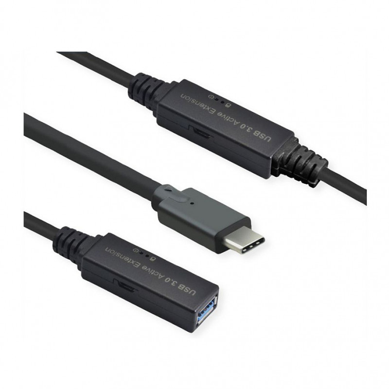 ROLINE USB 3.2 Gen 1 Aktives Repeater Kabel, Typ A - C, schwarz, 10 m
