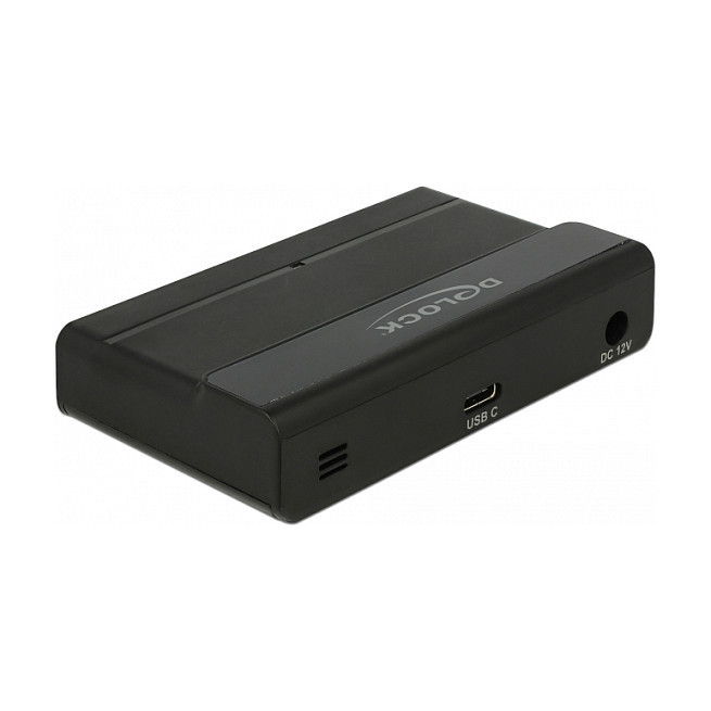 "DeLOCK External USB 3.1 Hub 4 Port with 10 Gbps. Host interface: USB 3.2 Gen 2 (3.1 Gen 2) Type-C, Hub interfaces: USB 3.2 Gen 2 (3.1 Gen 2) Type-A. Data transfer rate: 10000 Mbit/s, Product colour: Black. Power supply type: AC, Input voltage: 100 - 240 V, Input current: 0.8 A. Width: 92 mm, Depth: 54 mm, Height: 19 mm. Cables included: USB Type-A to USB Type-C"\n"This USB hub by Delock can be connected to a computer via the USB Type-A interface. It expands the computer by four USB Type-A connectors."