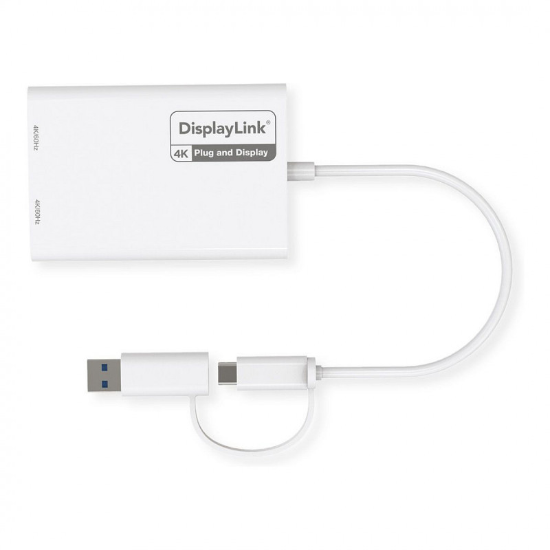 ROLINE Multi-DisplayLink Adapter USB Typ A+C - 2x DP, 4K