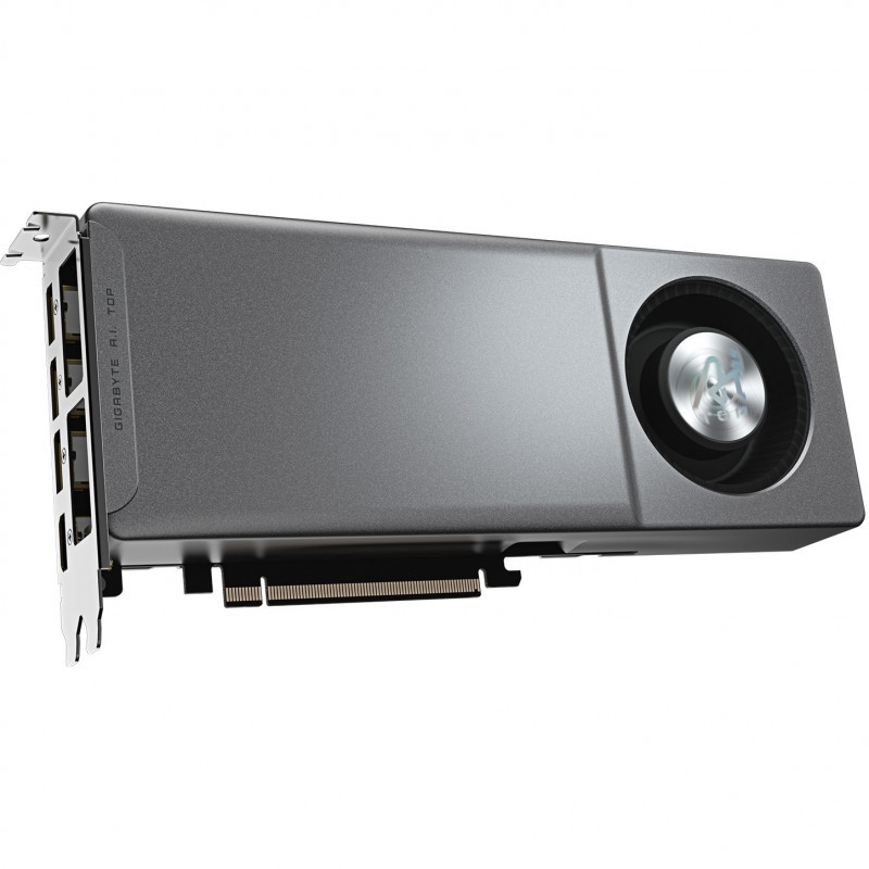 "GIGABYTE Radeon AI PRO R9700 AI TOP 32G Graphics Card- 32GB GDDR6, 256 bit, PCI-E 5.0, 2920MHz Core Clock, 3 x DP, 1 x HDMI, GV-R9700AI TOP-32GD 1.1. Graphics processor family: AMD, Graphics processor: Radeon AI PRO R9700, Processor frequency: 2350 MHz. Discrete graphics card memory: 32 GB, Graphics card memory type: GDDR6, Memory bus: 256 bit, Memory clock speed: 20000 MHz. Maximum resolution: 7680 x 4320 pixels. DirectX version: 12.0, OpenGL version: 4.6. Interface type: PCI Express x16 5.0. Cooling type: Active, Number of fans: 1 fan(s)"\n"Experience the next level of gaming immersion with GIGABYTE's AMD graphics cards. Crafted to deliver uncompromising performance and stunning visuals, our GPUs redefine gaming excellence. Featuring advanced cooling solutions and innovative technologies, GIGABYTE AMD graphics cards empower gamers to push the boundaries of what's possible, delivering unmatched gaming experiences."