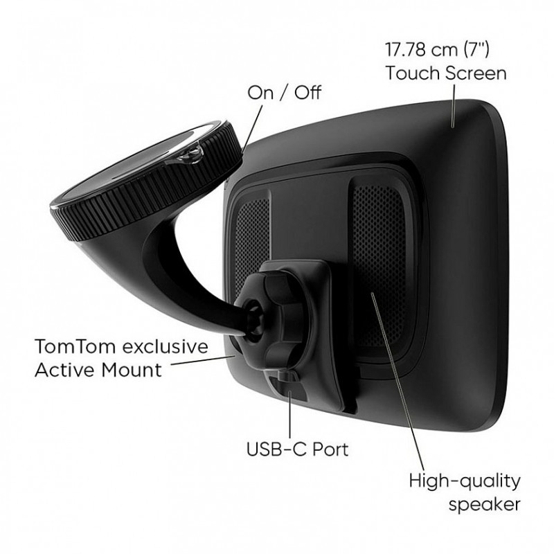 "TomTom GO. Languages support: Bulgarian, CAT, Czech, Danish, German, Dutch, English, Spanish, Estonian, Finnish, French, Greek,..., Road camera report license term: 12 month(s). Map coverage: All Europe. Display diagonal: 17.8 cm (7""), Display resolution: 1024 x 600 pixels. Storage media type: Flash, Internal storage capacity: 32 GB, RAM capacity: 2048 MB. Form factor: Handheld/Fixed, Product colour: Black"\n