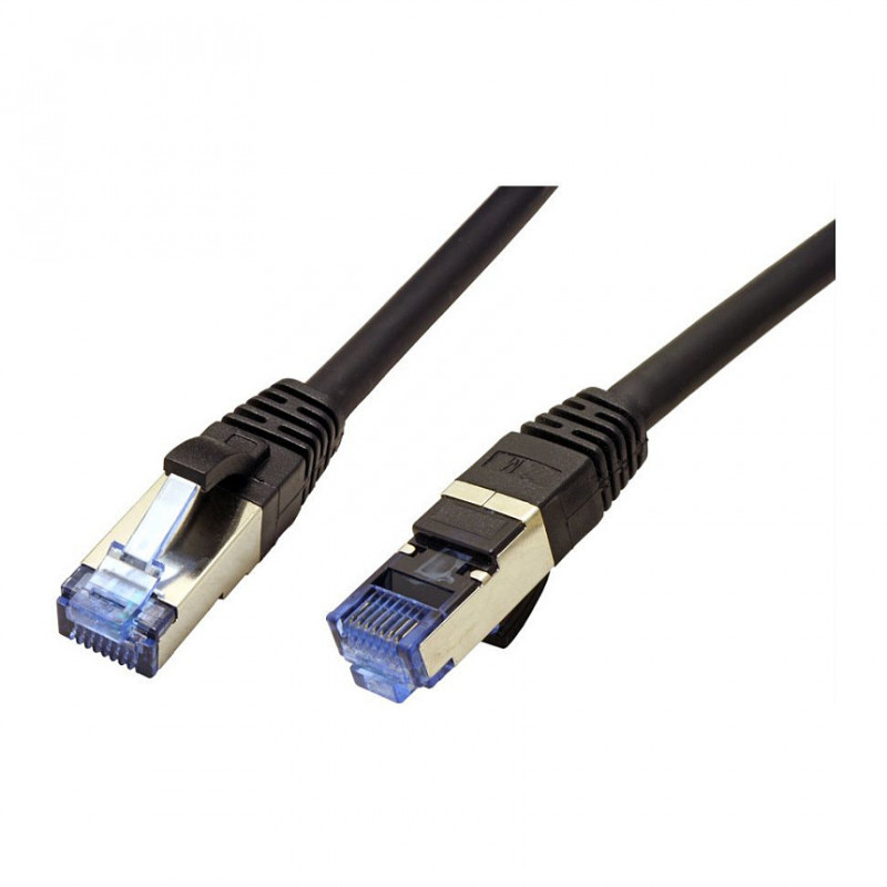 "VALUE 21.99.1964. Cable length: 0.3 m, Cable standard: Cat6a, Cable shielding: S/FTP (S-STP), Connector 1: RJ-45, Connector 2: RJ-45, Product colour: Black"\n"The cheap solution for data transfer rates of up to 10 Gbit/s and a bandwidth of 500 MHz. Patch cable for networking connections between devices. Prepared shielded Twisted Pair cable (PiMF) with RJ-45 connectors on both ends. Durable due to moulded kink protection. Flexible cable, suitable for narrow bending. Impedance: 100 Ohm. Contact settings 1:1, in accordance with the EIA/TIA 568 standard. Construction: 8 lines, pairs shielded with aluminium foil, complete braided shielding.
