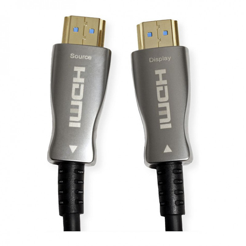"VALUE 14.99.3481. Cable length: 30 m, Connector 1: HDMI Type A (Standard), Connector 1 gender: Male, Connector 2: HDMI Type A (Standard), Connector 2 gender: Male, HDMI version: 2.0, 3D, Product colour: Black"\n"With our UHD (3840x2160 @60Hz) capable HDMI fiber cable you have the possibility to establish a connection of up to 30m between your devices. The active cable (AOC) does not require a separate power supply and is particularly well suited for routing in a cable duct."