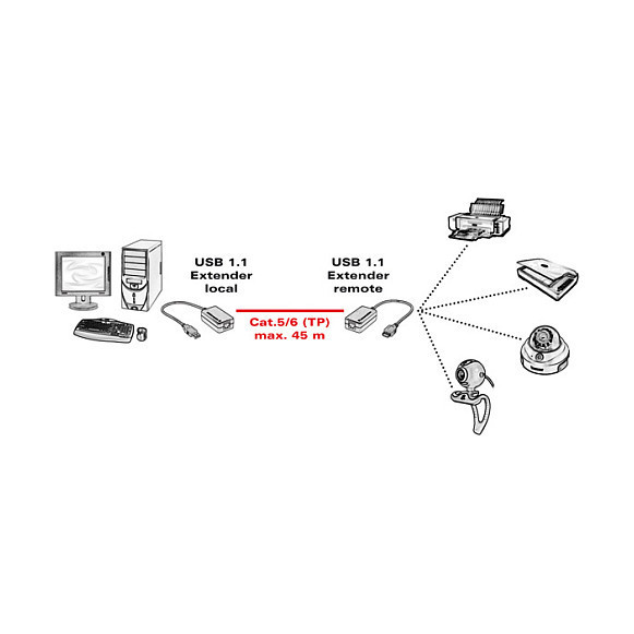 "VALUE USB 1.1 Extender over RJ-45. Product colour: Transparent"\n"