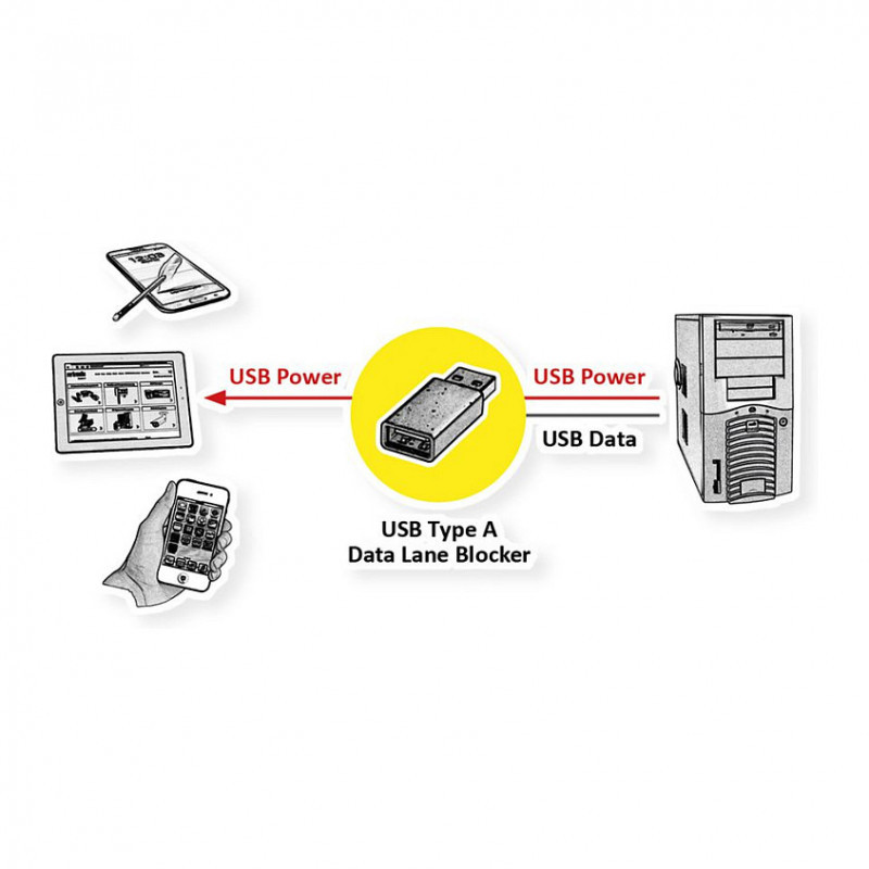 "VALUE 11.99.8332. Product type: Port blocker, Compatible ports/slots: USB Type-A, Product colour: White. Weight: 6.4 g"\n"The USB Type A Port Blocker blocks the data lanes of the used USB port and thus protects your end device from unwanted access or malware - nothing but power is transmitted. The solution is especially useful in foreign environments where USB sockets can be manipulated or hijacked comparatively easily, such as in hotels, or anchorage points like airports or train stations."