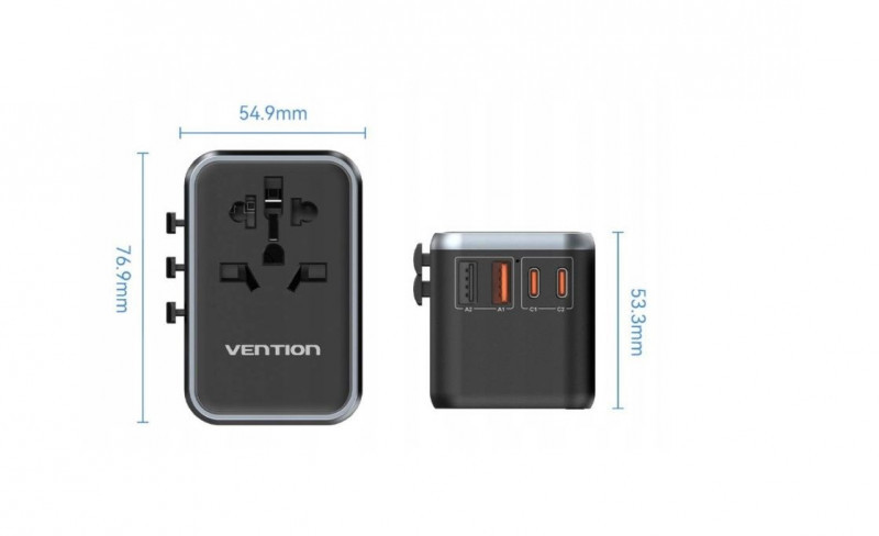 Vention 65 W GaN kelioninis adapteris ir įkroviklis 2x USB-A 2x USB-C